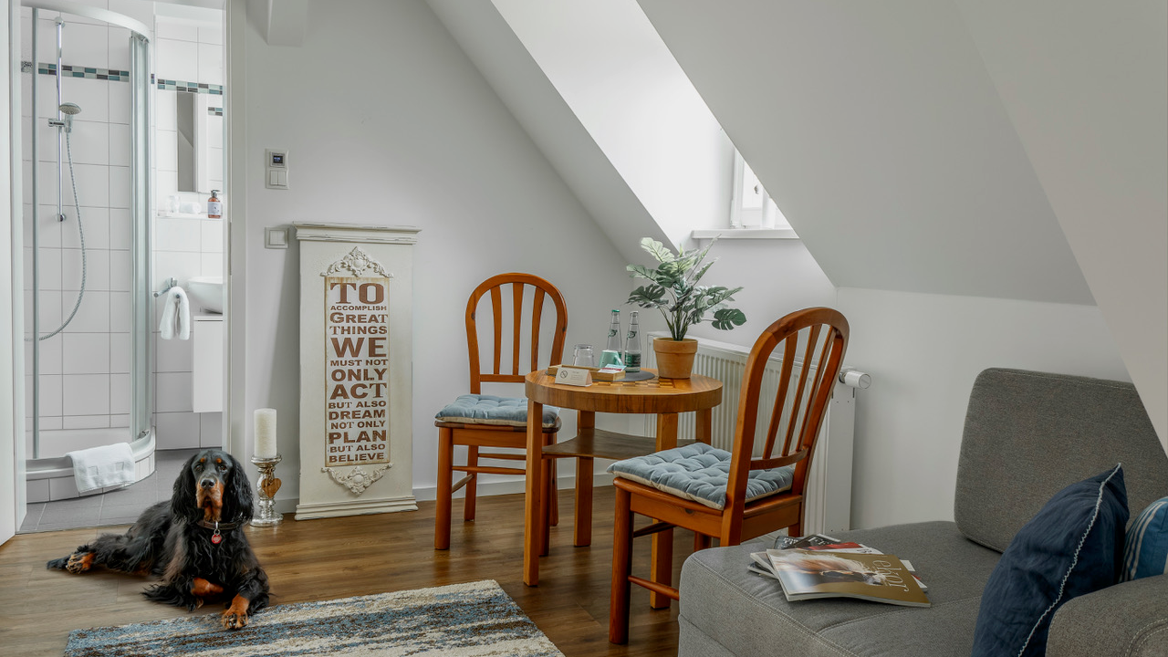 Hunde sind bei uns auf Schloss Falkenhaus herzlich willkommen und dürfen selbstverständlich mit aufs Zimmer! Rund um das Schloss laden Wiesen, Waldwege und ruhige Feldpfade zu ausgedehnten Spaziergängen ein, direkt ab der Haustür. Ob zum Gassigehen am Morgen oder für einen kleinen Abenteuer-Ausflug zwischendurch: Ihr Vierbeiner wird die Umgebung lieben. Auf Wunsch geben wir gern Tipps für hundefreundliche Ausflugsziele in der Region oder nahegelegene Badestellen für Hunde.